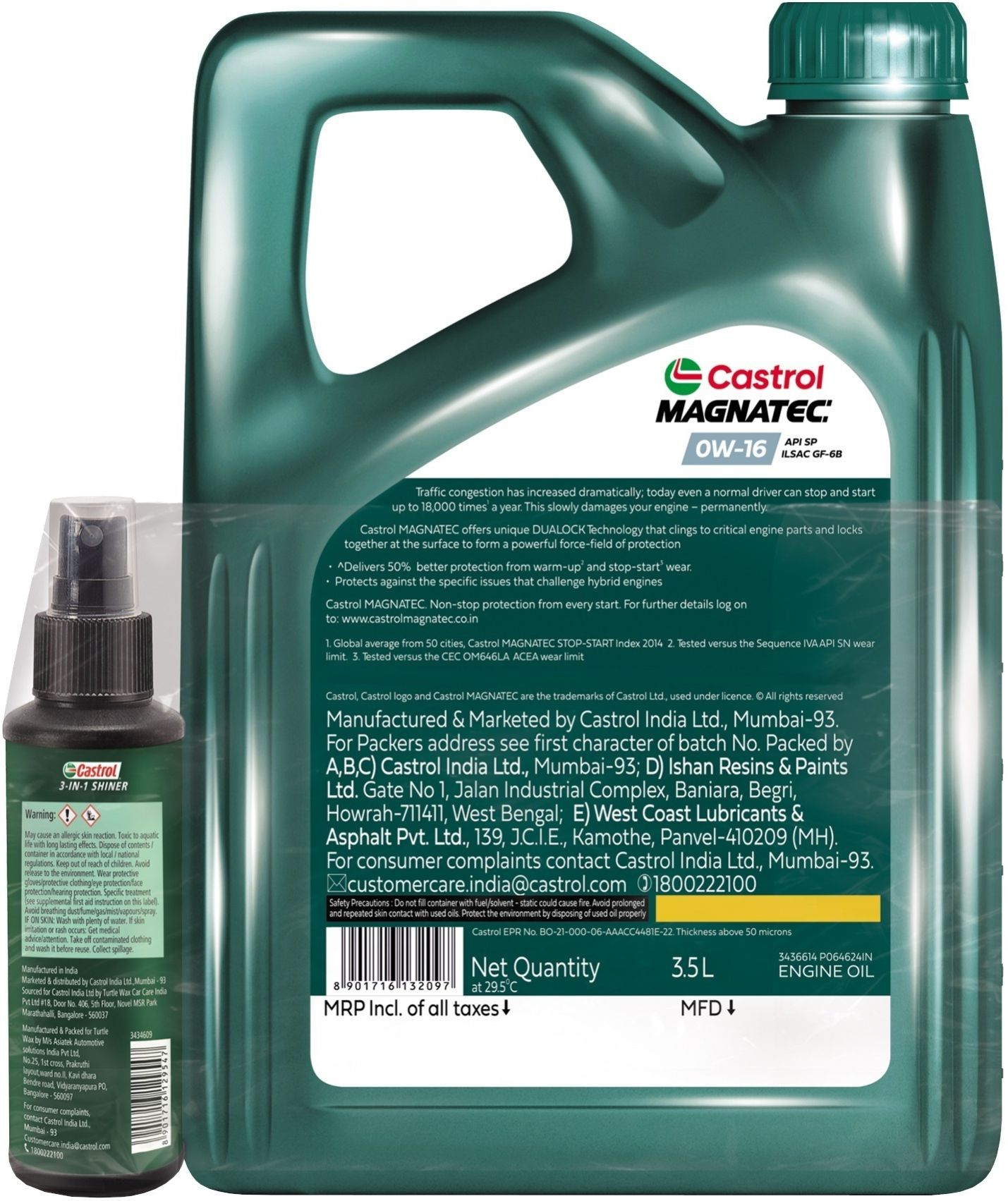 Castrol MAGNATEC 0W16(3.5L)+3-IN-1 SHINER(100ML) Full-Synthetic Engine Oil (3.6 L)