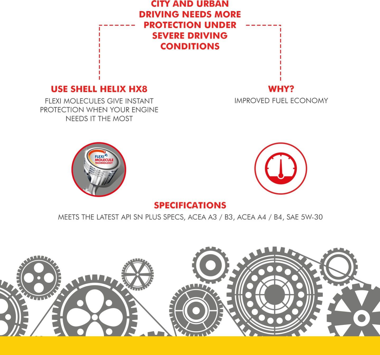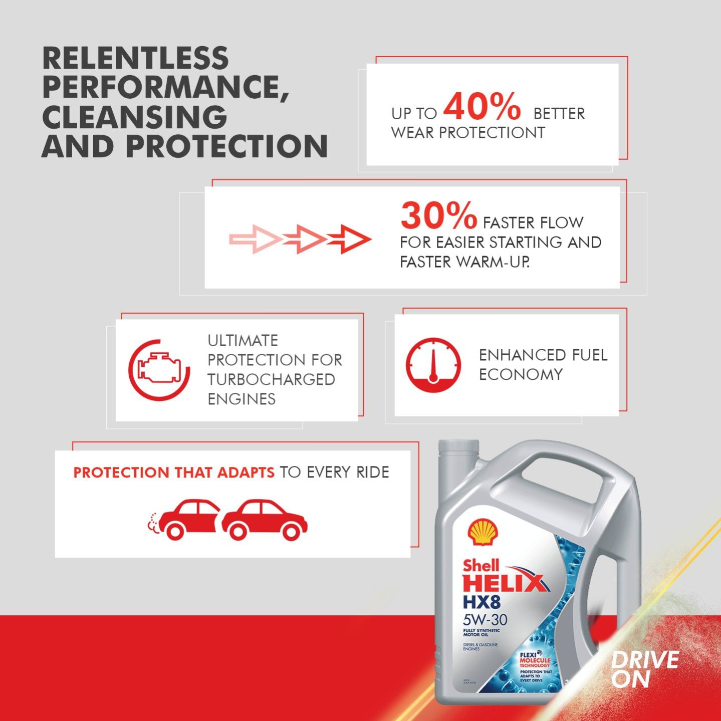 Shell Helix HX8 is a Fully Synthetic motor oil which features the dynamic �Flexi-Molecule Technology� that constantly adapt to boost protection,